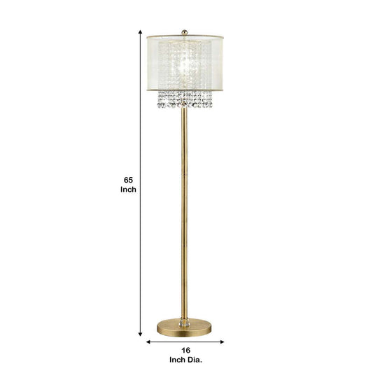 Floor Lamp With Hanging Crystal Accents, White ... Floor Lamp With Hanging Crystal Accents, White And Gold By Benzara