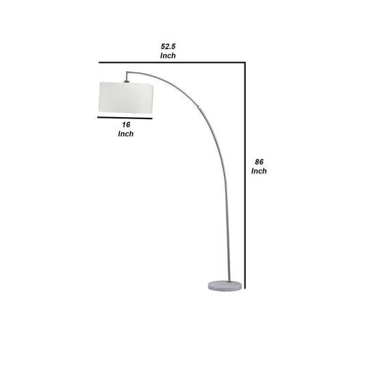 Floor Lamp With Curved Metal Frame And Drum Sha... Floor Lamp With Curved Metal Frame And Drum Shade, Silver By Benzara