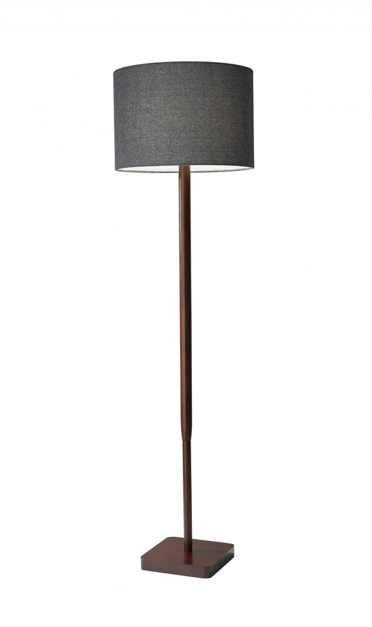 Brown And Black Solid Wood Floor Lamp With Dark... Brown And Black Solid Wood Floor Lamp With Dark Gray Fabric Drum Shade By Homeroots