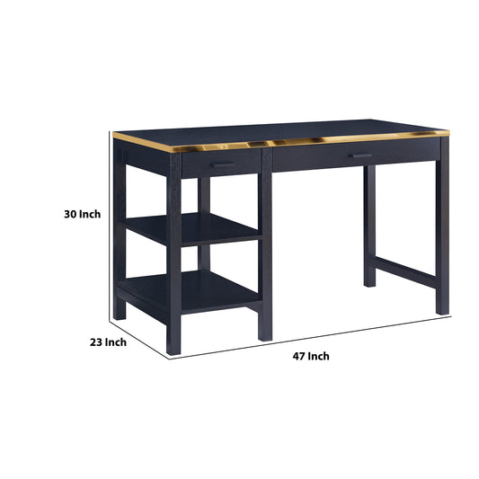 2 Drawer Rectangular Desk With 2 Open Shelves B... 2 Drawer Rectangular Desk With 2 Open Shelves Black And Gold By Benzara