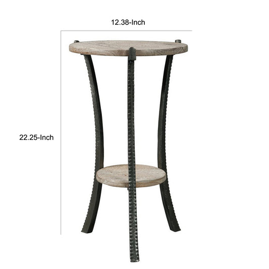 Round Wooden Top Accent Table With Flared Metal... Round Wooden Top Accent Table With Flared Metal Legs Brown And Gray By Benzara
