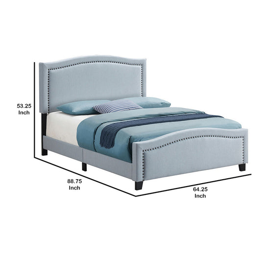 Fabric Upholstered Curved Design Queen Bed Blue... Fabric Upholstered Curved Design Queen Bed Blue By Benzara