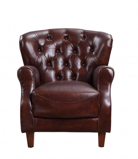 Brown and Steel Blue Top Grain Leather Tufted C... Brown and Steel Blue Top Grain Leather Tufted Club Chair By Homeroots