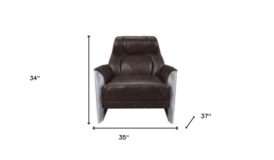 Espresso and Silver Top Grain Leather Tufted Cl... Espresso and Silver Top Grain Leather Tufted Club Chair By Homeroots