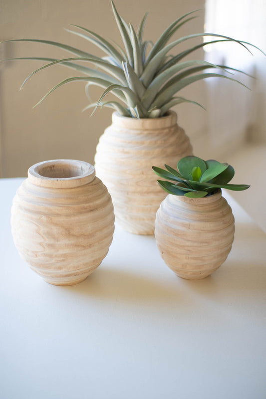Set Of Three Natural Wooden Gourd Pots By Kalalou Set Of Three Natural Wooden Gourd Pots By Kalalou