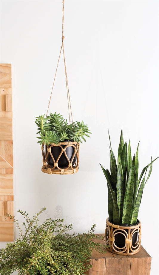 Boca Metal Hanging Pot in Rattan Basket -By Acc... Boca Metal Hanging Pot in Rattan Basket -By Accent Decor