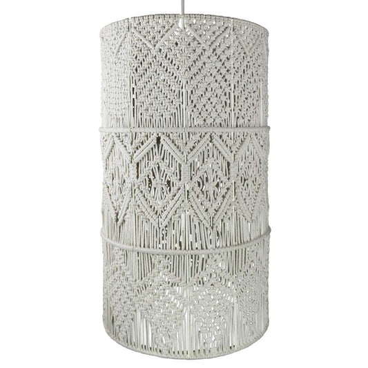 Macrame Pendant - Tall Drum with Fringe By HomArt Macrame Pendant - Tall Drum with Fringe By HomArt