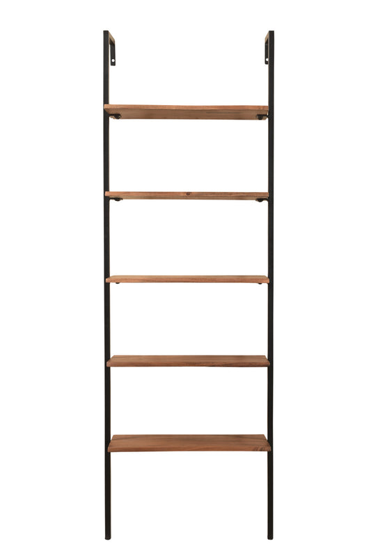 Brown Metal and Solid Wood Five Tier Ladder Boo... Brown Metal and Solid Wood Five Tier Ladder Bookcase By Homeroots
