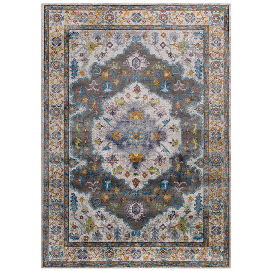 Modway Tribute Diantha Distressed Vintage Flora... Modway Tribute Diantha Distressed Vintage Floral Persian Medallion 8x10 Area Rug - R-1190-810