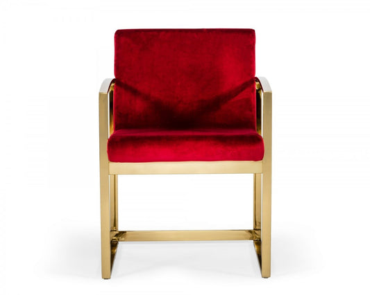 32" Lux Red Velvet and Gold Armchair By Homeroots 32" Lux Red Velvet and Gold Armchair By Homeroots
