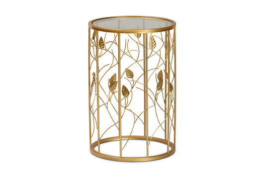 Baxton Studio Anaya Modern and Contemporary Gla... Baxton Studio Anaya Modern and Contemporary Glam Brushed Gold Finished Metal and Glass Leaf Accent End Table