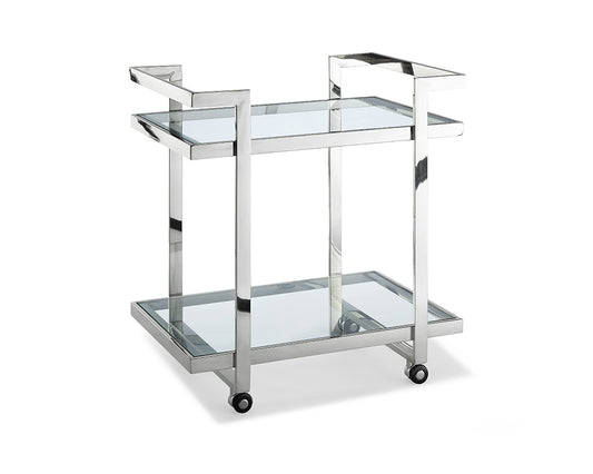 Side Table Or Bar Cart Clear Glass Stainless St... Side Table Or Bar Cart Clear Glass Stainless Steel Base On Castors By Homeroots - 320894