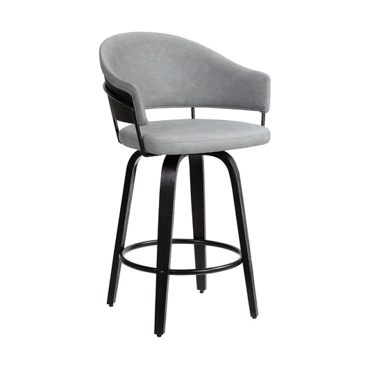 30" Luxurious Grey Faux Leather and Black Wood ... 30" Luxurious Grey Faux Leather and Black Wood Swivel Bar Stool By Homeroots