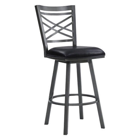 30" Transitional Black Faux Leather Metal Cross... 30" Transitional Black Faux Leather Metal Cross Back Bar Stool By Homeroots