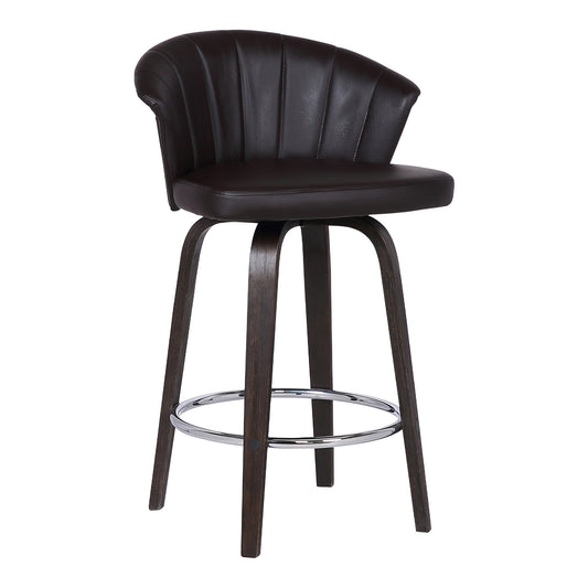 26" Dark Brown Faux Leather and Rustic Wood Bac... 26" Dark Brown Faux Leather and Rustic Wood Back Swivel Bar Stool By Homeroots