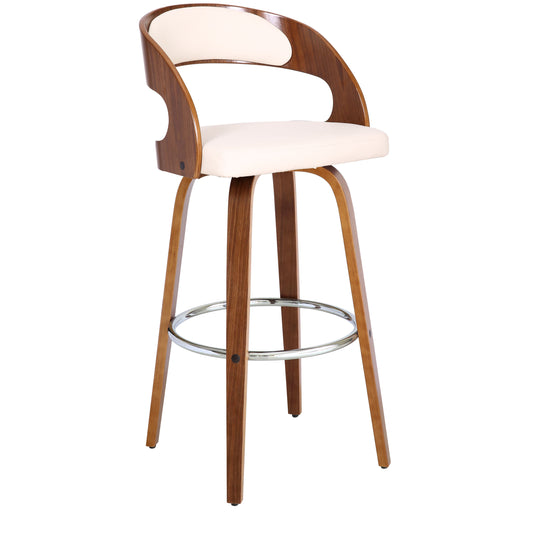30" Luxurious Cream Faux Leather and Walnut Swi... 30" Luxurious Cream Faux Leather and Walnut Swivel Bar Stool By Homeroots