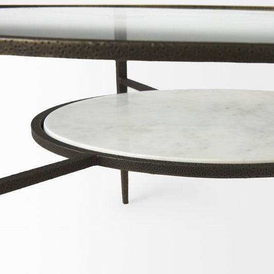 Iron Glass and Marble Round Coffee Table By Hom... Iron Glass and Marble Round Coffee Table By Homeroots