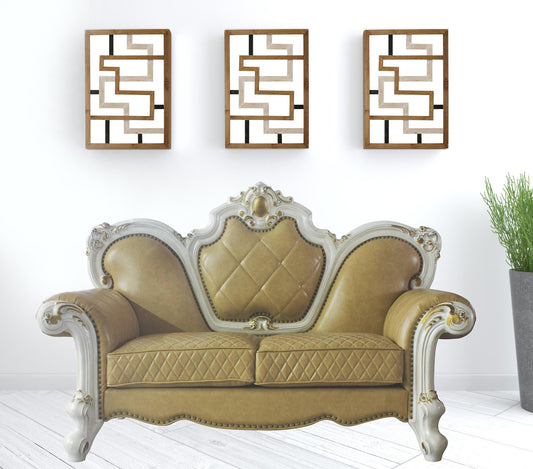 67" Bone And Gold Faux Leather Love Seat And To... 67" Bone And Gold Faux Leather Love Seat And Toss Pillows By Homeroots