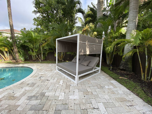 Gray Outdoor Steel Metal Adjustable Day Bed wit... Gray Outdoor Steel Metal Adjustable Day Bed with Canopy and Taupe Cushions By Homeroots