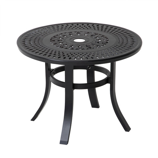 Black Rounded Metal Outdoor Bistro Table With U... Black Rounded Metal Outdoor Bistro Table With Umbrella Hole By Homeroots