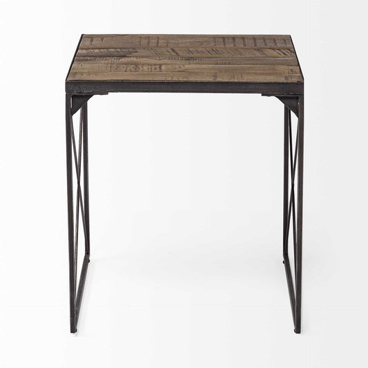 Medium Brown Wood Side Table with Square Top an... Medium Brown Wood Side Table with Square Top and Iron Cross Braced By Homeroots