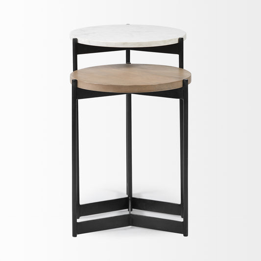 Set of 2 Round Brown Solid Wood Iron Base Nesti... Set of 2 Round Brown Solid Wood Iron Base Nesting Side Tables By Homeroots