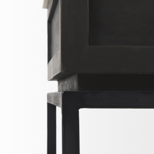 Black Metal and Natural Wood Hinged-Top Side Ta... Black Metal and Natural Wood Hinged-Top Side Table By Homeroots