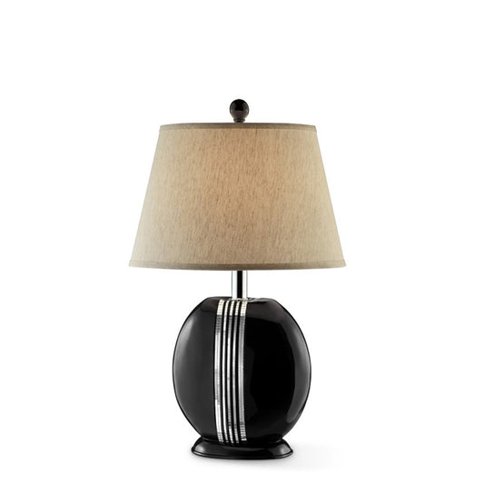 Black Traditional Wooden Linen Shade - Table La... Black Traditional Wooden Linen Shade - Table Lamp By Homeroots