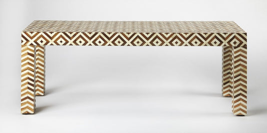 Geo and Chevron Teak and Bone Inlay Bench By Ho... Geo and Chevron Teak and Bone Inlay Bench By Homeroots