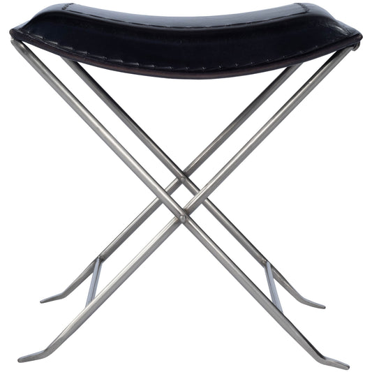 Dark Brown Leather and Metal Stool By Homeroots Dark Brown Leather and Metal Stool By Homeroots