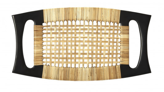 Black and Natural Cane Woven Stool By Homeroots Black and Natural Cane Woven Stool By Homeroots