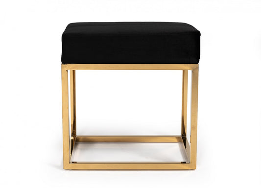 Square Modern Black Velvet Ottoman with Gold St... Square Modern Black Velvet Ottoman with Gold Stainless Steel By Homeroots