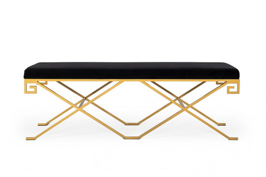 Rectangular Modern Black Velvet Bench with Cham... Rectangular Modern Black Velvet Bench with Champagne Gold Steel Frame By Homeroots