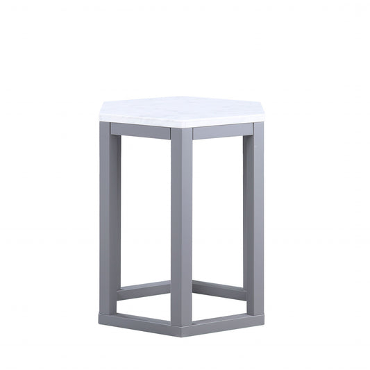 Set Of Two Gray Hexagonal Marble Top End Tables... Set Of Two Gray Hexagonal Marble Top End Tables By Homeroots