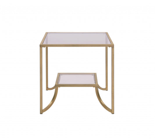 Antique Gold Smoky Glass Metal End Table By Hom... Antique Gold Smoky Glass Metal End Table By Homeroots