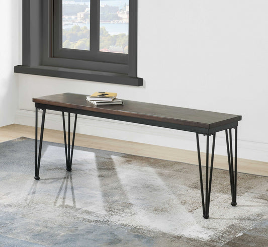 Walnut Black Metal Wood Bench By Homeroots Walnut Black Metal Wood Bench By Homeroots