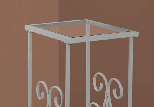 White Metal Tempered Glass Accent Table By Home... White Metal Tempered Glass Accent Table By Homeroots