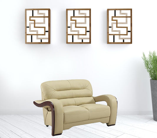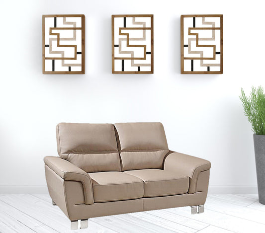 37" Modern Beige Leather Loveseat By Homeroots 37" Modern Beige Leather Loveseat By Homeroots
