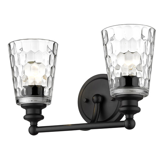 Black Metal and Pebbled Glass Two Light Wall Li... Black Metal and Pebbled Glass Two Light Wall Light By Homeroots