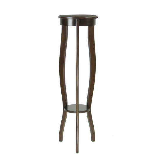 Round Pedestal Stand with Open Bottom Shelf and... Round Pedestal Stand with Open Bottom Shelf and Flared Legs, Brown By Benzara