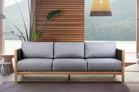 Sienna Outdoor Eucalyptus Sofa in Teak Finish w... Sienna Outdoor Eucalyptus Sofa in Teak Finish with Grey Cushions By Armen Living