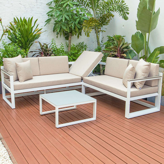 30" Aluminum Wood and Rattan Sectional Sofa Set... 30" Aluminum Wood and Rattan Sectional Sofa Set By Homeroots