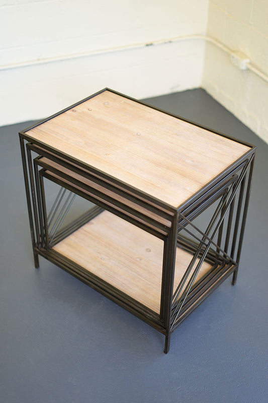 Recycled Wood Shelves With Round Metal Frames S... Recycled Wood Shelves With Round Metal Frames Set Of 3 By Kalalou