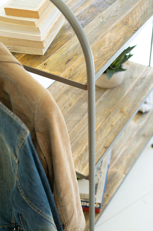 Kalalou Recycled Wood And Metal Demi Lune Shelv... Kalalou Recycled Wood And Metal Demi Lune Shelving Unit