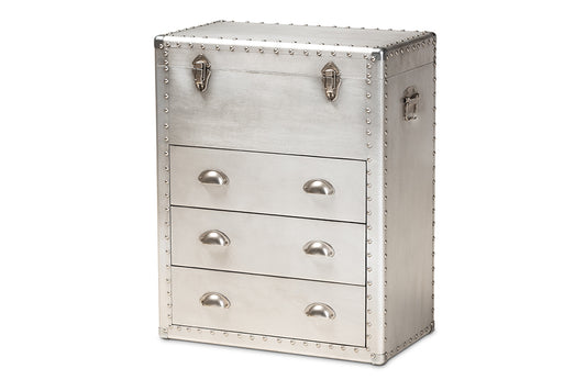 Baxton Studio Serge French Industrial Silver Me... Baxton Studio Serge French Industrial Silver Metal 3-Drawer Accent Storage Cabinet