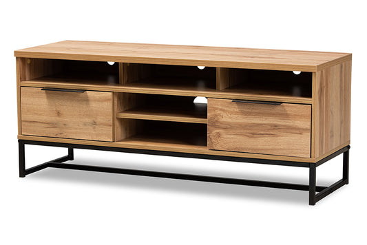 Baxton Studio Reid Modern and Contemporary Indu... Baxton Studio Reid Modern and Contemporary Industrial Oak Finished Wood and Black Metal 2-Drawer TV Stand
