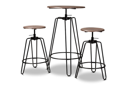 Baxton Studio Veera Vintage Industrial Rustic W... Baxton Studio Veera Vintage Industrial Rustic Walnut Finished Wood and Black Metal 3-Piece Height Adjustable Bar Pub Set