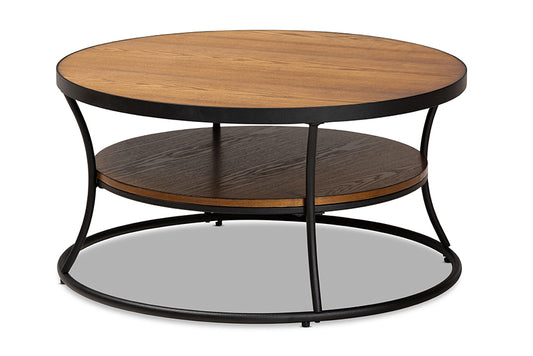 Industrial Style Round Metal And Solid Wood Cof... Industrial Style Round Metal And Solid Wood Coffee Table With Open Bottom Shelf, Gray And Brown By Benzara
