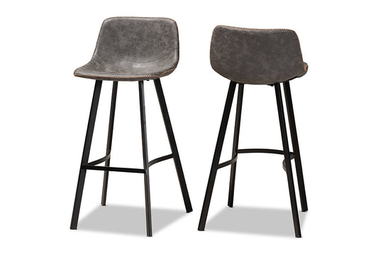 Baxton Studio Tani Rustic Industrial Grey and B... Baxton Studio Tani Rustic Industrial Grey and Brown Faux Leather Upholstered Black Finished 2-Piece Metal Bar Stool Set