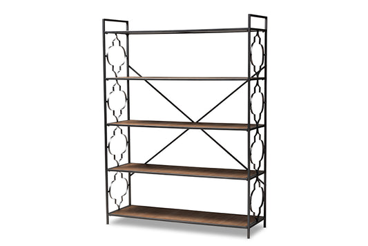Baxton Studio Mirna Industrial Black Iron Metal... Baxton Studio Mirna Industrial Black Iron Metal and Natural Oak Wood 5-Shelf Quatrefoil Accent Bookcase